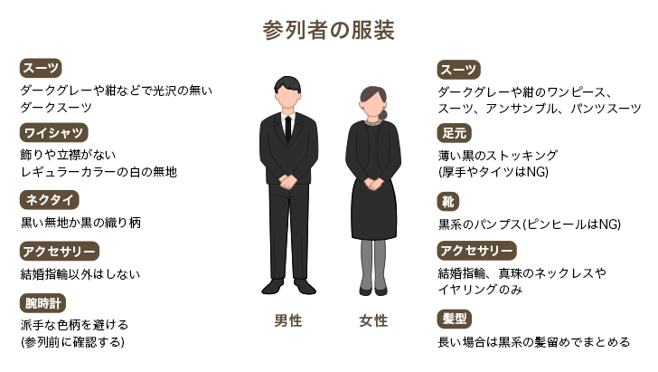 家族葬の参列者の服装は、一般的な葬儀と同じです。
